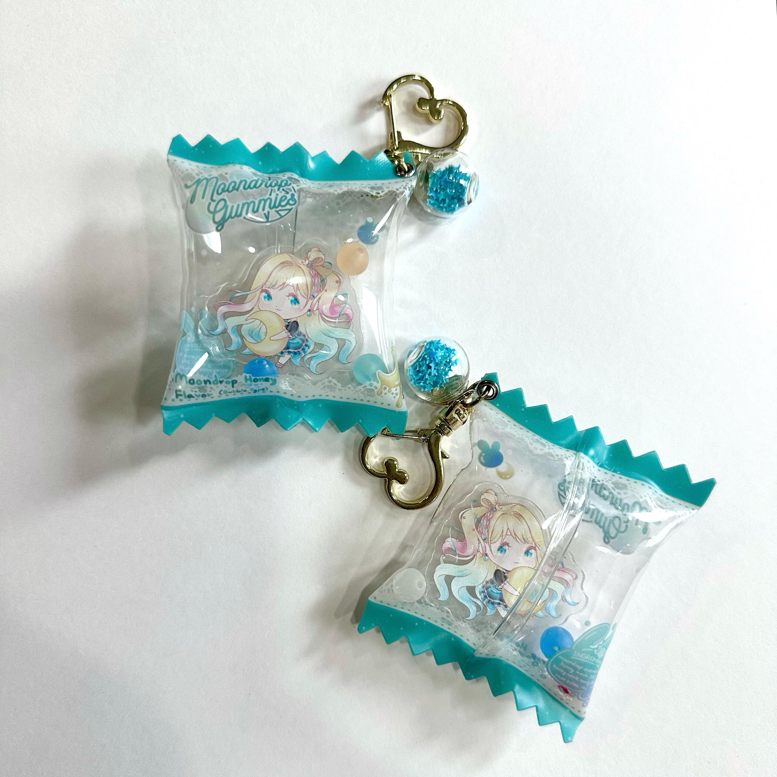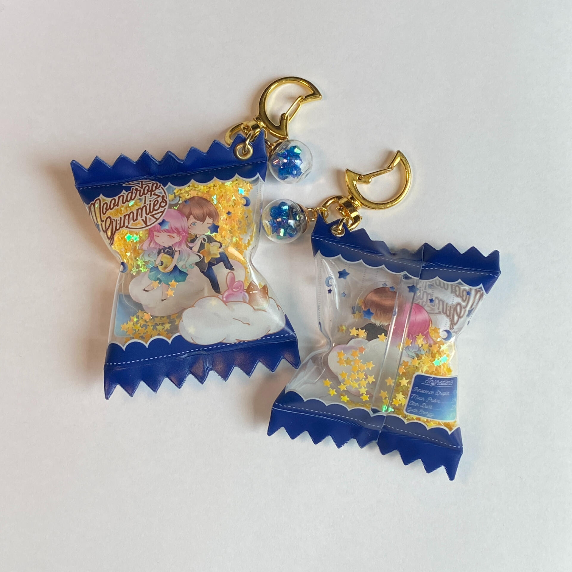 Type: Double Sided, Clear BaseCan be used as either a standee or a keychain (thus the name "standkey"). This product is double sided, with a clear oval base.The art is the same art used in the product "Moondrop Gummies Candy Keychain". The OCs in here are Tsukishiro Kimika and Ukyou Shuuya.
